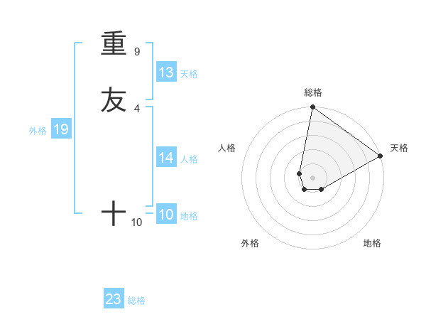 重友 十さんの総格は23画の5点!