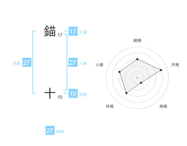錨 十さんの人格は27画の3点!