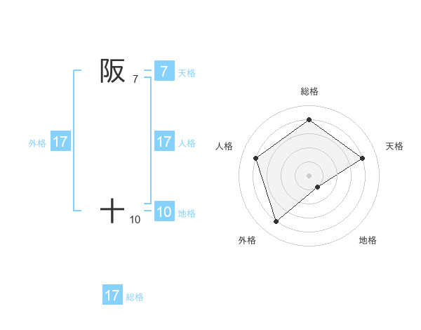 阪 十さんの総格は17画の4点!