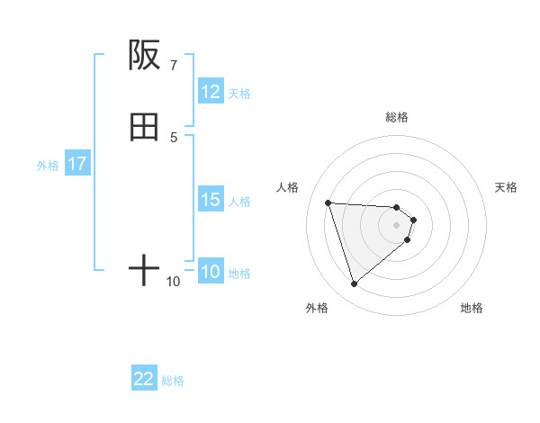 阪田 十さんの外格は17画の4点!