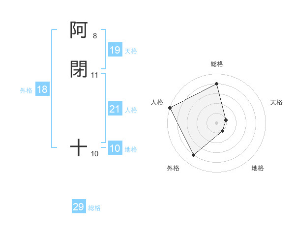 阿閉 十さんの総格は29画の4点!