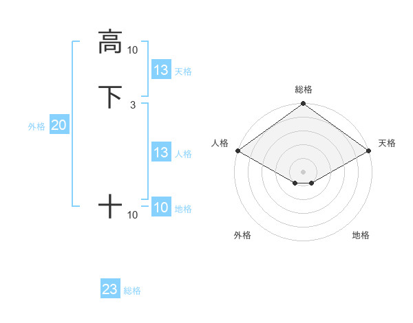高下 十さんの総格は23画の5点!