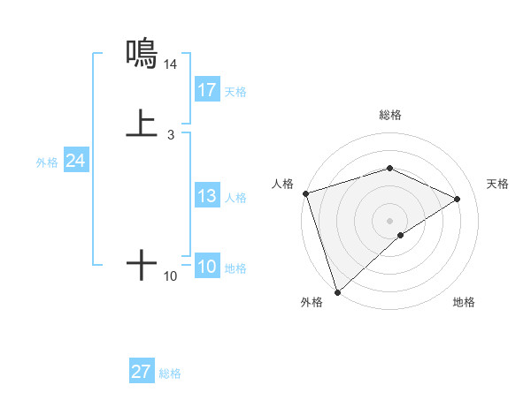 鳴上 十さんの外格は24画の5点!