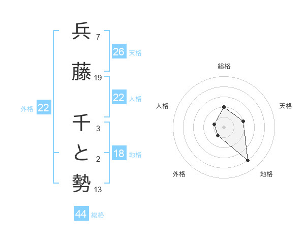 兵藤 千と勢さんを姓名の画数から五運を鑑定
