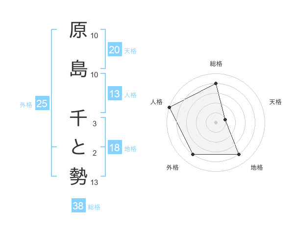 原島 千と勢さんの総格は38画の4点!
