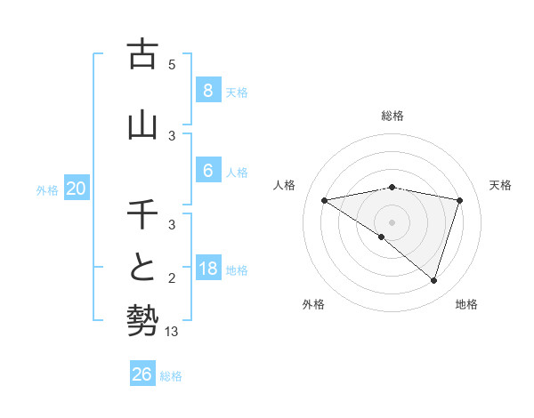 古山 千と勢さんを姓名の画数から五運を鑑定