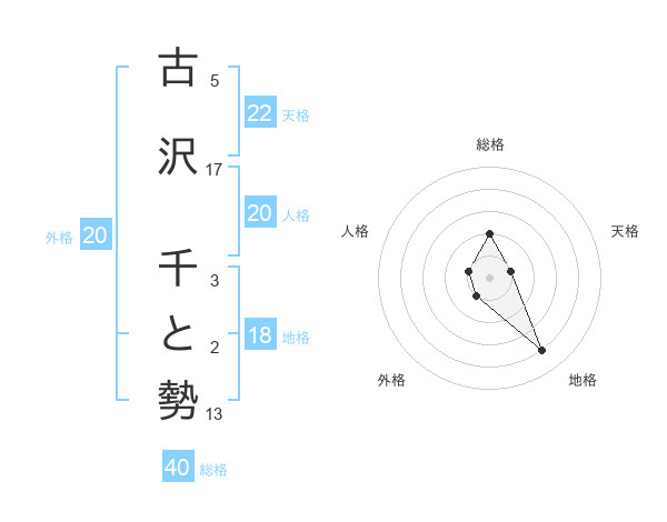 古沢 千と勢さんを姓名の画数から五運を鑑定