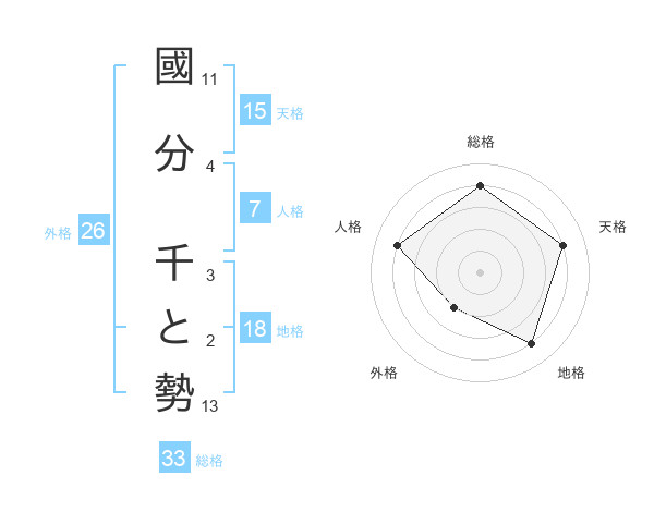國分 千と勢さんを姓名の画数から五運を鑑定