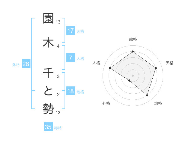 園木 千と勢さんの総格は35画の4点!