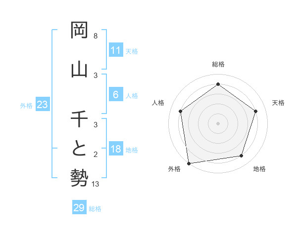 岡山 千と勢さんを姓名の画数から五運を鑑定