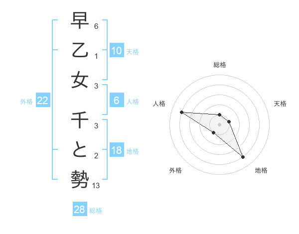 早乙女 千と勢さんを姓名の画数から五運を鑑定