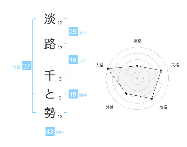 淡路 千と勢さんを姓名の画数から五運を鑑定