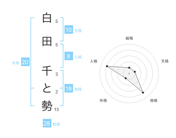 白田 千と勢さんを姓名の画数から五運を鑑定
