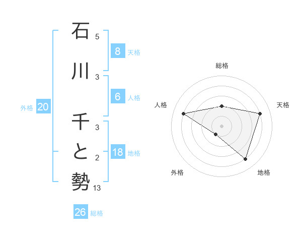石川 千と勢さんを姓名の画数から五運を鑑定