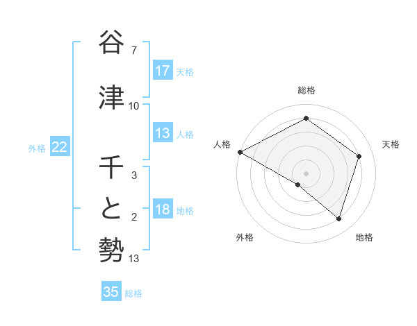 谷津 千と勢さんを姓名の画数から五運を鑑定