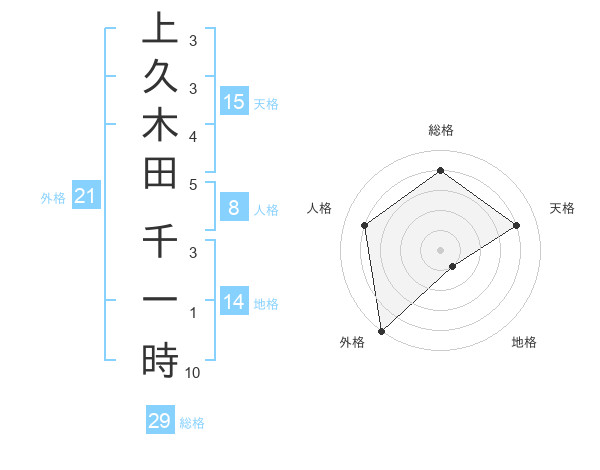 上久木田 千一時さんを姓名の画数から五運を鑑定