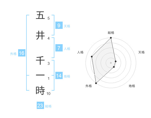 五井 千一時さんの総格は23画の5点!
