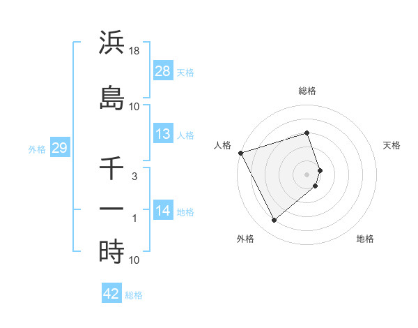 浜島 千一時さんの天格は28画の1点!