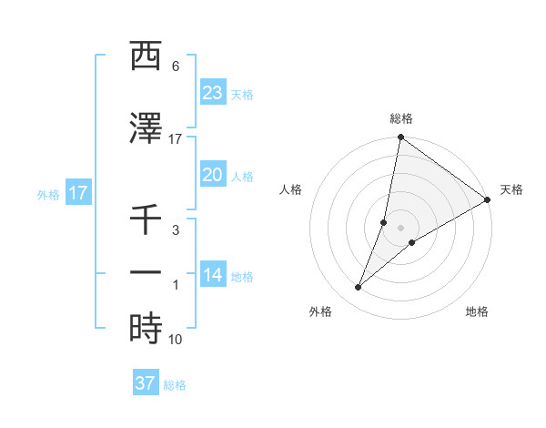 西澤 千一時さんを姓名の画数から五運を鑑定