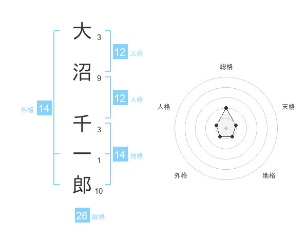 大沼 千一郎さんを姓名の画数から五運を鑑定