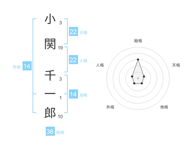 小関 千一郎さんを姓名の画数から五運を鑑定