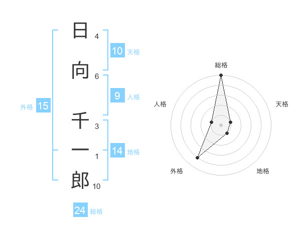 日向 千一郎さんを姓名の画数から五運を鑑定