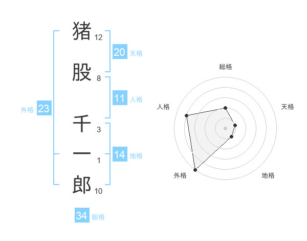 猪股 千一郎さんを姓名の画数から五運を鑑定
