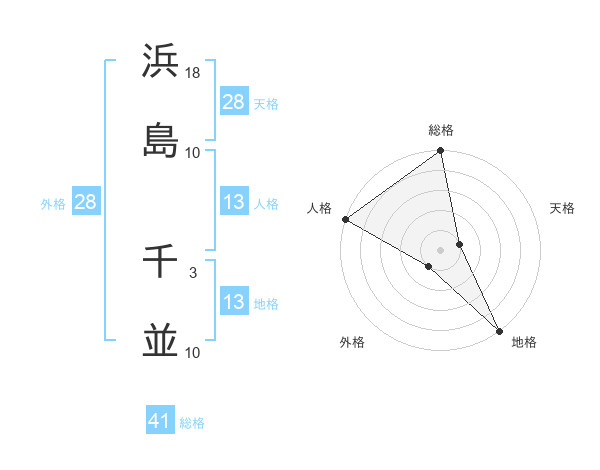 浜島 千並さんの総格は41画の5点!