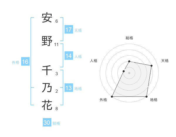安野 千乃花さんの総格は30画の2点!