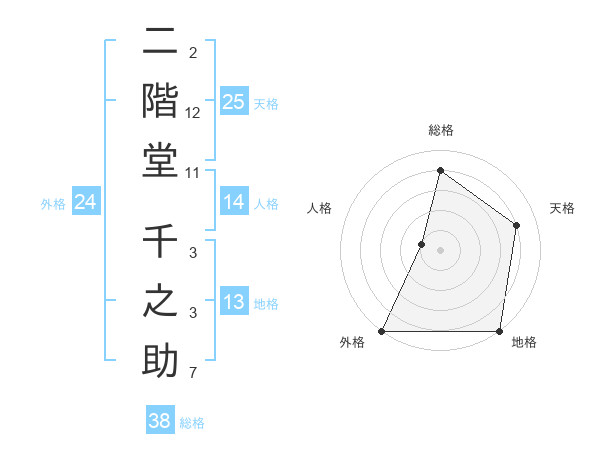 二階堂 千之助さんの総格は38画の4点!