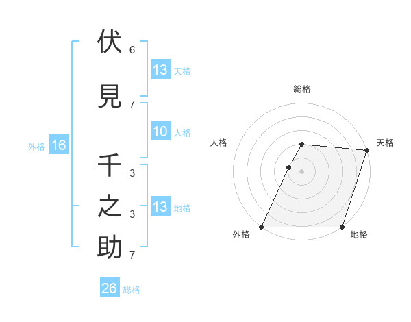伏見 千之助さんを姓名の画数から五運を鑑定