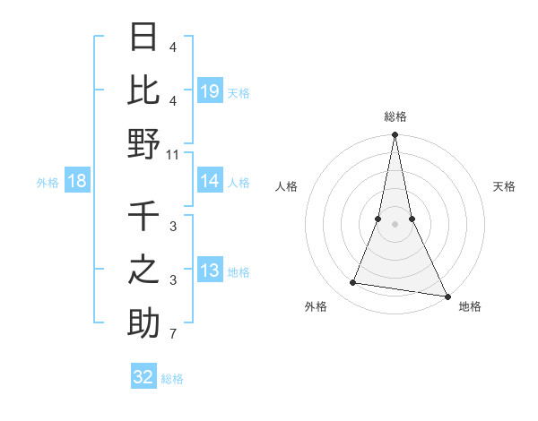 日比野 千之助さんの総格は32画の5点!