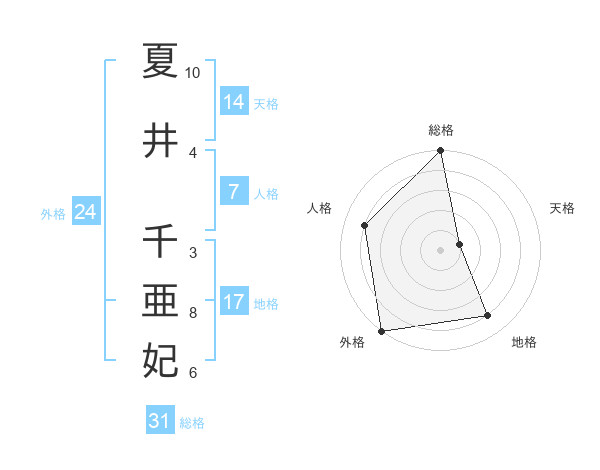 夏井 千亜妃さんを姓名の画数から五運を鑑定