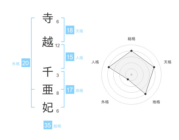 寺越 千亜妃さんを姓名の画数から五運を鑑定