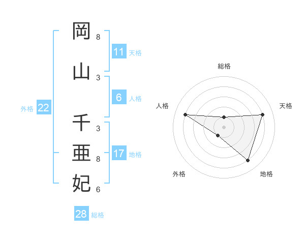 岡山 千亜妃さんを姓名の画数から五運を鑑定