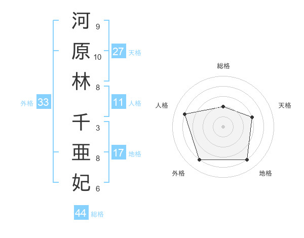 河原林 千亜妃さんを姓名の画数から五運を鑑定
