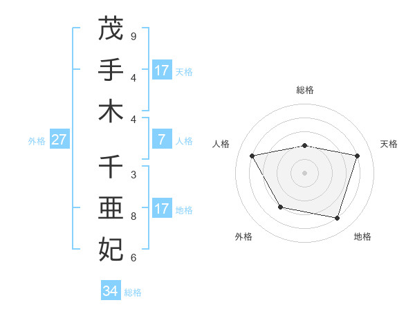 茂手木 千亜妃さんを姓名の画数から五運を鑑定