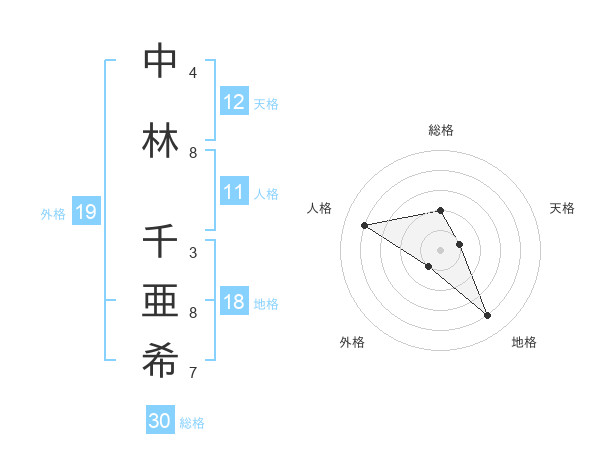 中林 千亜希さんの総格は30画の2点