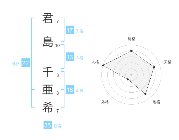 君島 千亜希さんを姓名の画数から五運を鑑定