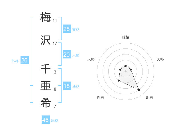 梅沢 千亜希さんの総格は46画の1点!