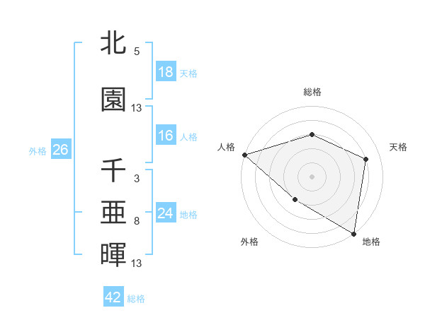 北園 千亜暉さんを姓名の画数から五運を鑑定