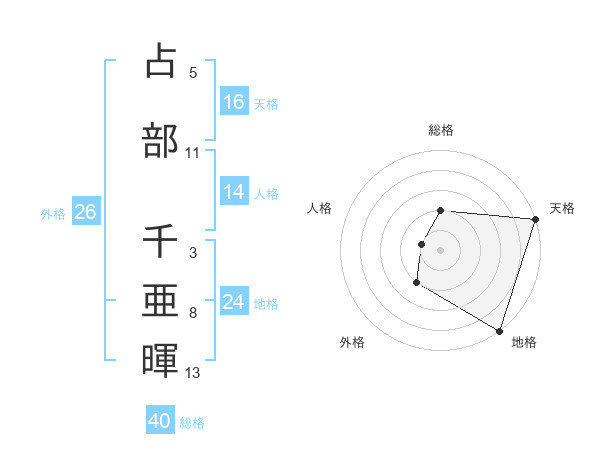 占部 千亜暉さんの天格は16画の5点!
