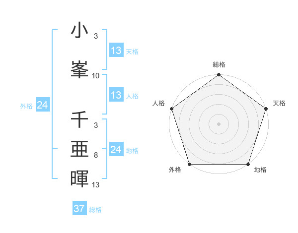 小峯 千亜暉さんの天格は13画の5点!