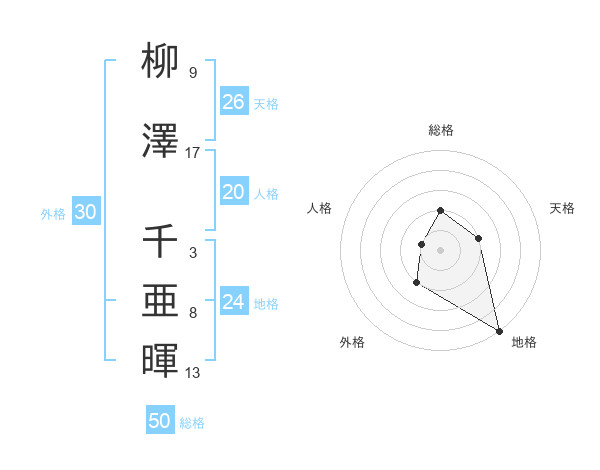 柳澤 千亜暉さんの総格は50画の2点!