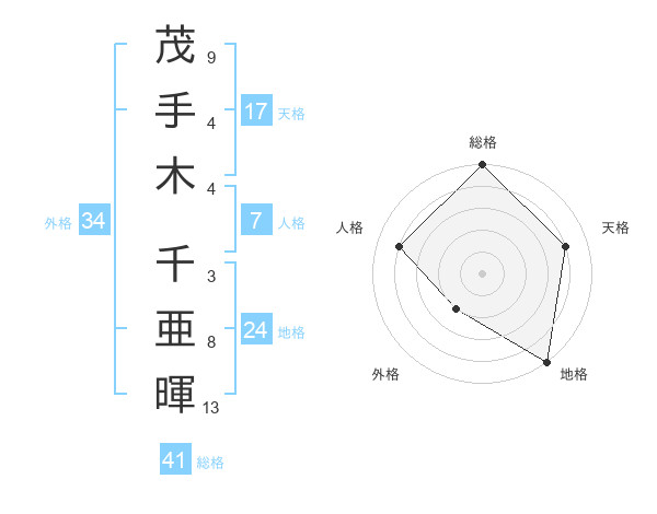 茂手木 千亜暉さんを姓名の画数から五運を鑑定
