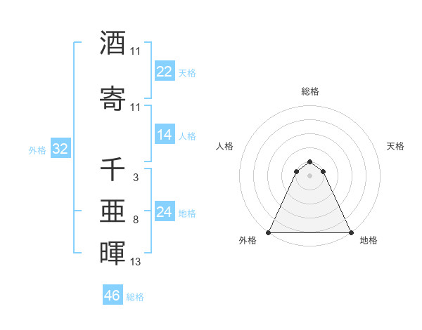 酒寄 千亜暉さんを姓名の画数から五運を鑑定