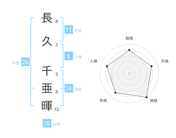長久 千亜暉さんを姓名の画数から五運を鑑定