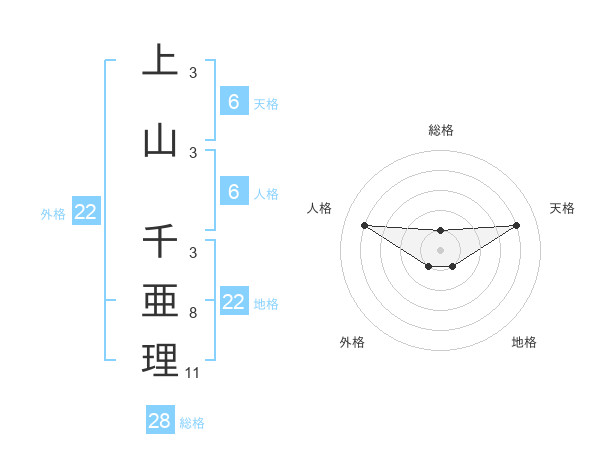 上山 千亜理さんの外格は22画の1点!