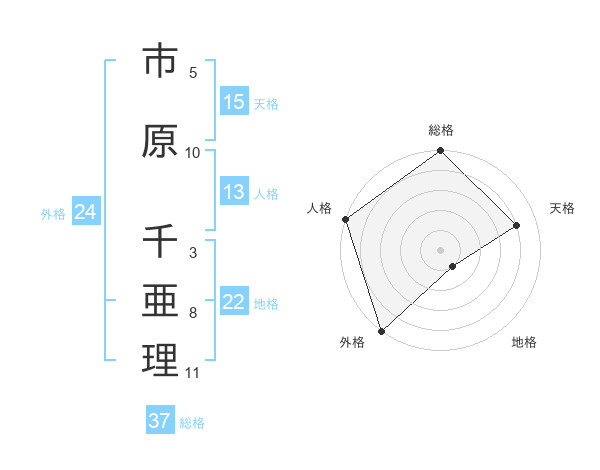 市原 千亜理さんの外格は24画の5点!