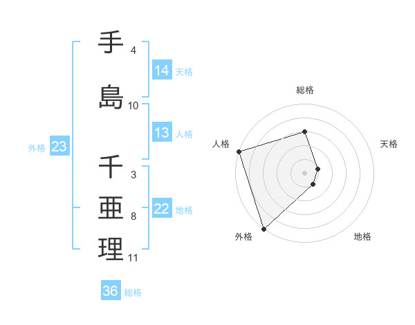 手島 千亜理さんを姓名の画数から五運を鑑定